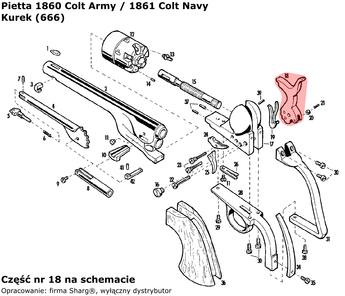 666 (serwis) kurek firmy Pietta do rewolwerów czarnoprochowych 1851 Colt Reb Nord Navy oraz 1860 Colt Army / 1861 Colt Navy.